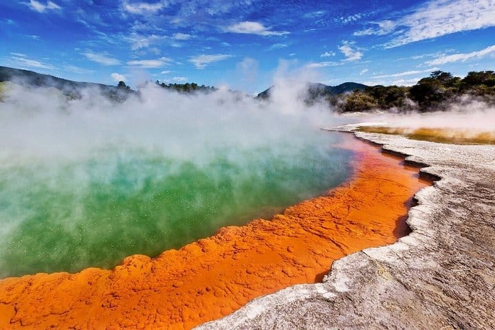 Explore Rotorua’s highlights in one unforgettable day. Visit the crystal-clear Blue Spring, walk among the towering trees of the peaceful Redwoods Forest, and witness the colorful geothermal wonders of Waiotapu, including bubbling mud pools and the famous Champagne Pool. A perfect blend of nature, forest, and volcanic landscapes in one scenic journey.